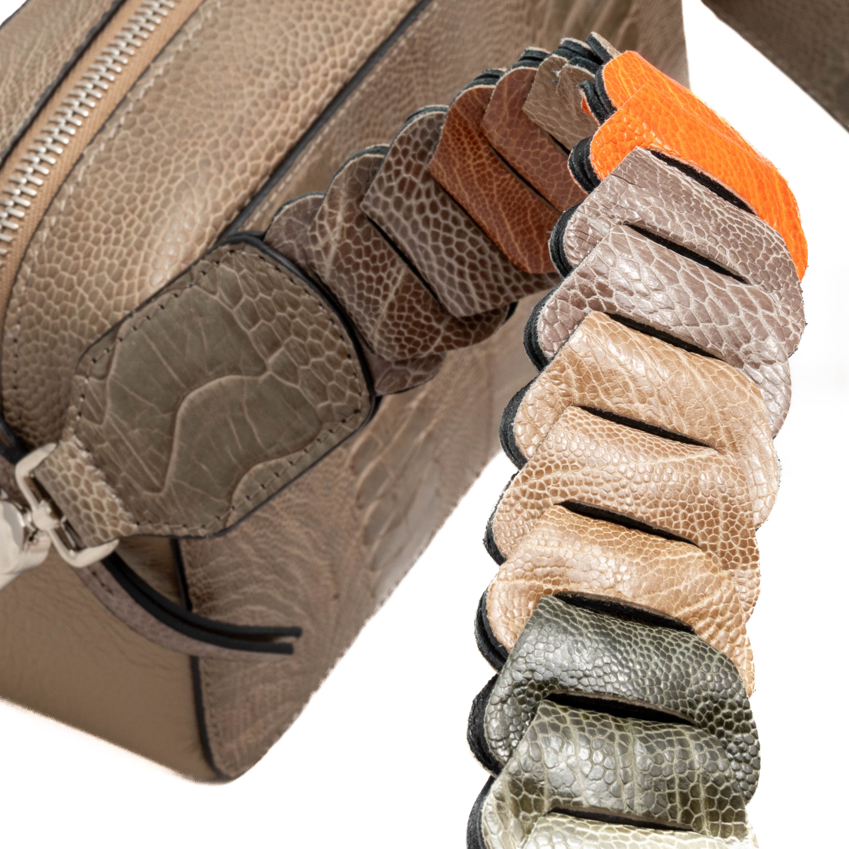 Experience the unique charm and texture of ostrich leather, enhancing your wardrobe with a touch of exotic sophistication. Our collection offers the perfect blend of style and functionality, making every accessory memorable.